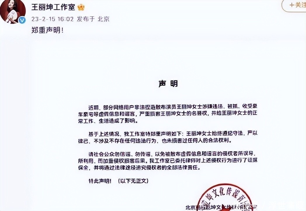对此,王丽坤工作室第一时间发布严正声明,坚决否认艺人存在任何违法犯罪行为,并强调所有指控均无事实依据。